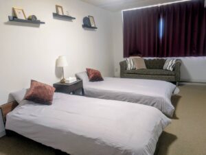 もう1台ベッドを追加して欲しいという要望が多かったので、クイーンベッドは撤去し、シングルベッド2台へ変更いたしました!